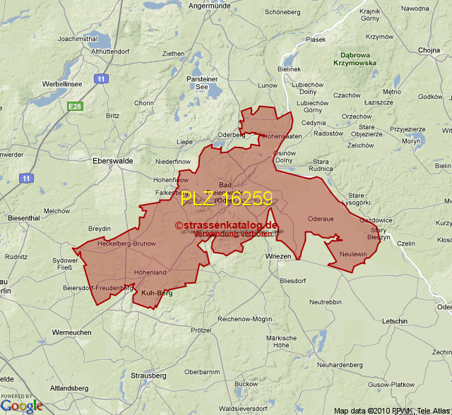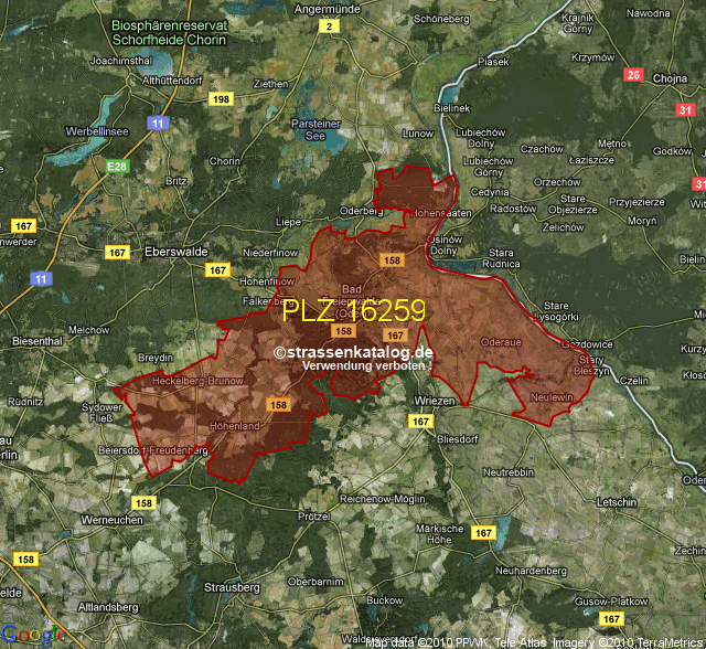 Ortsteile von Bad Freienwalde mit der PLZ 16259