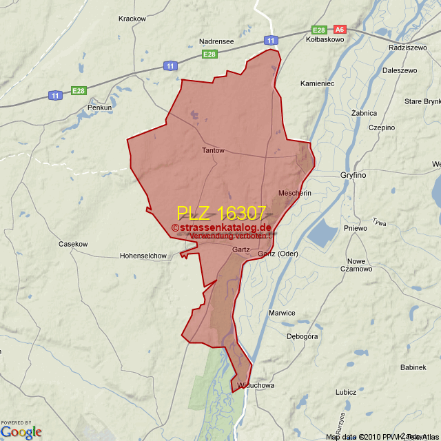 Straßenverzeichnis zur Postleitzahl 16307