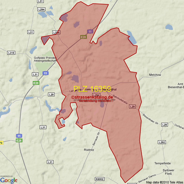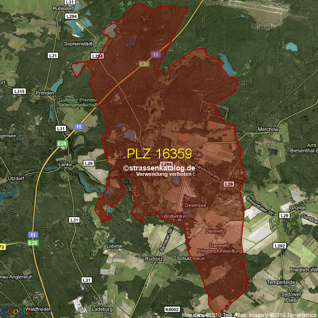 Postleitzahlgebiet (PLZ) 16359