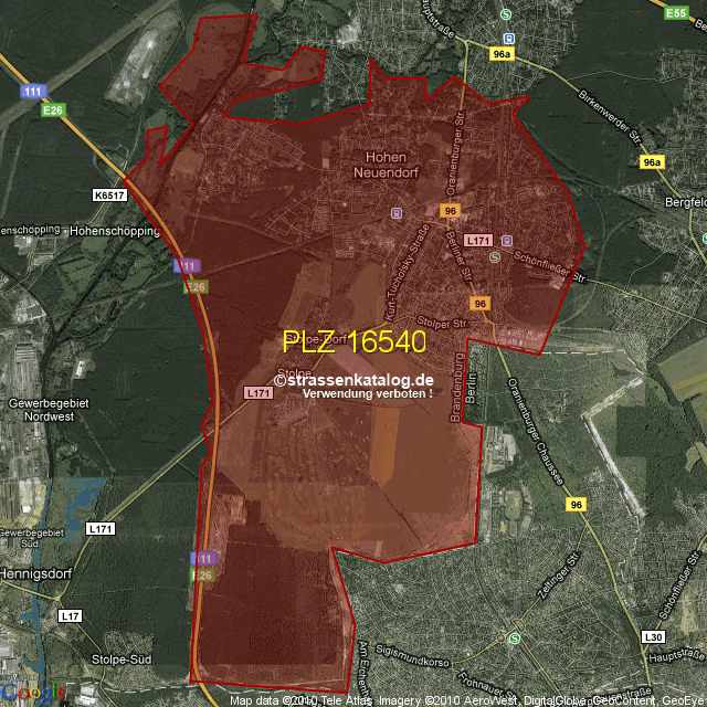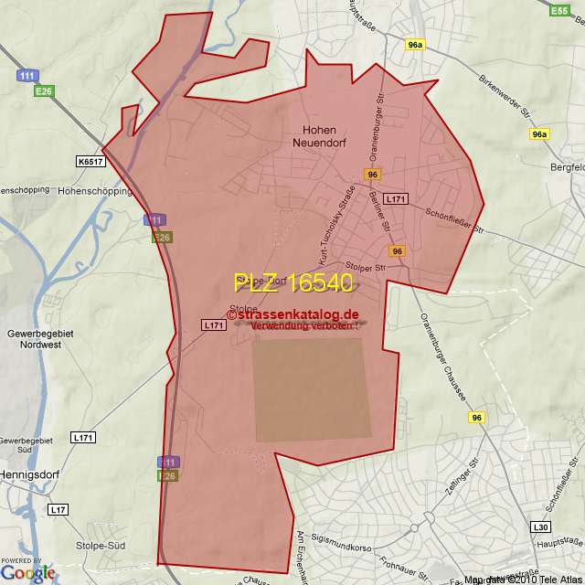 Ortsteile von Hohen Neuendorf mit der PLZ 16540