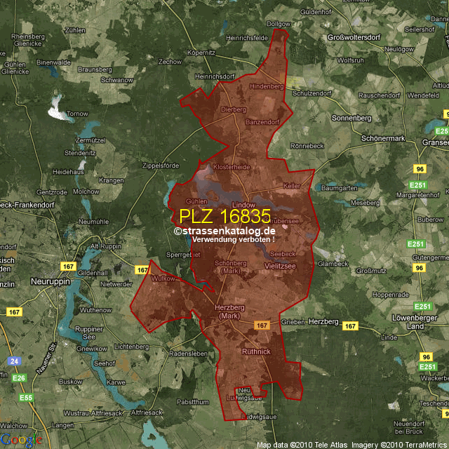 Ortsteile von Vielitzsee mit der PLZ 16835