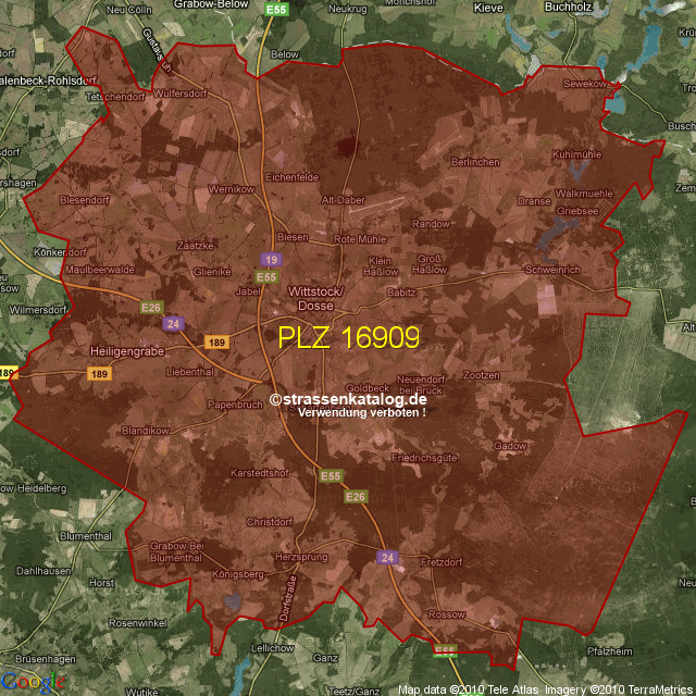 Postleitzahlgebiet (PLZ) 16909