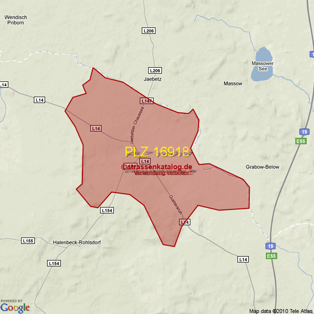 Postleitzahlgebiet (PLZ) 16918