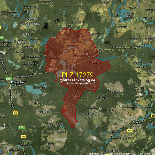 Straßenverzeichnis zur Postleitzahl 17279