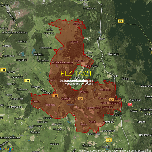 Ortsteile von Rothenklempenow mit der PLZ 17321