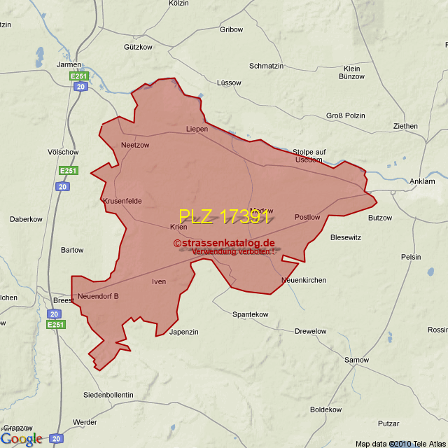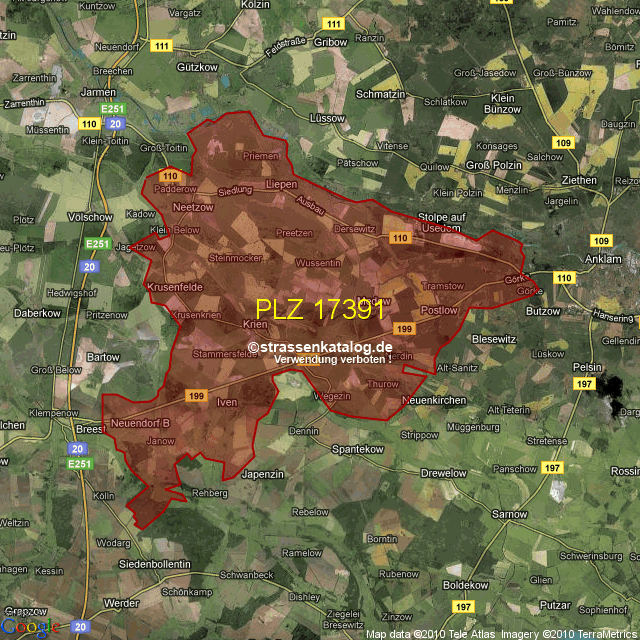 Ortsteile von Krusenfelde mit der PLZ 17391