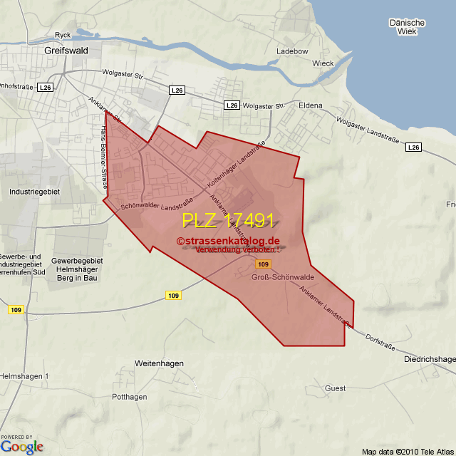 Straßenverzeichnis zur Postleitzahl 17491