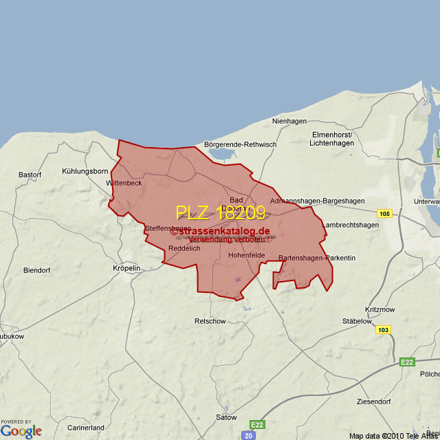 Straßenverzeichnis zur Postleitzahl 18209