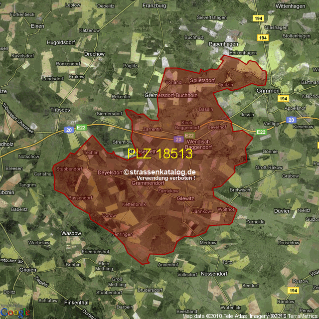 Ortsteile von Deyelsdorf mit der PLZ 18513