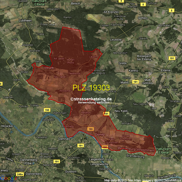 Ortsteile von Dömitz mit der PLZ 19303