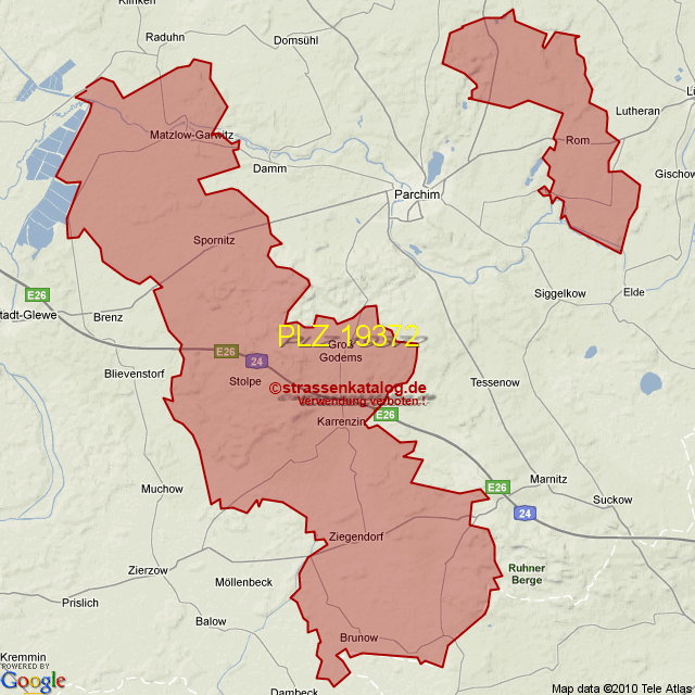 Postleitzahlgebiet (PLZ) 19372