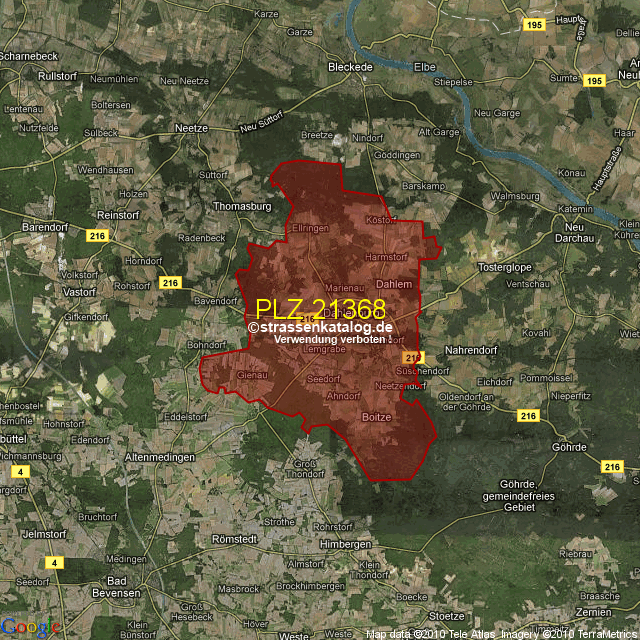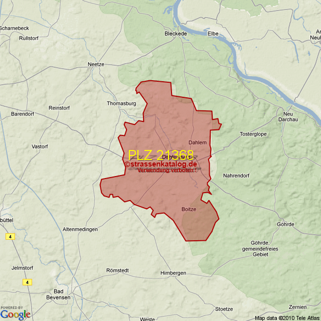 Ortsteile von Dahlenburg mit der PLZ 21368