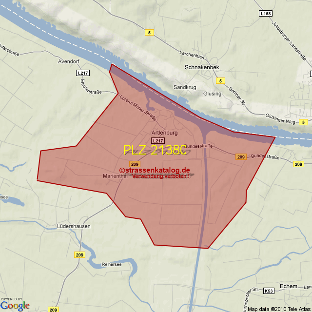 Straßenverzeichnis zur Postleitzahl 21380