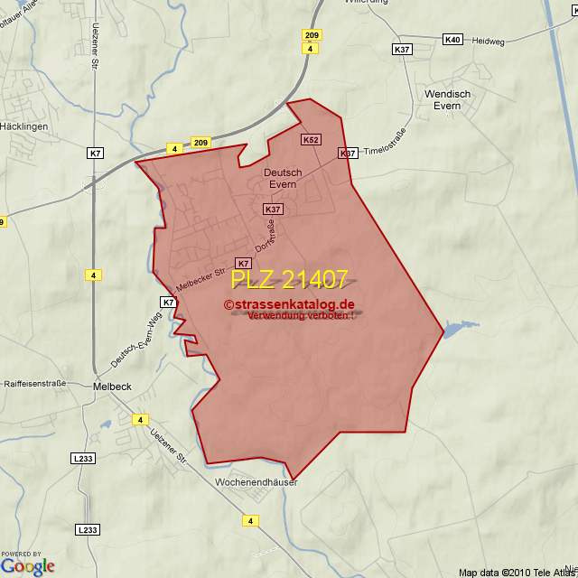 Postleitzahlgebiet (PLZ) 21407