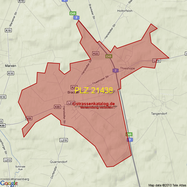 Postleitzahlgebiet (PLZ) 21438