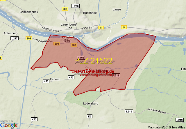 Ortsteile von Hohnstorf mit der PLZ 21522