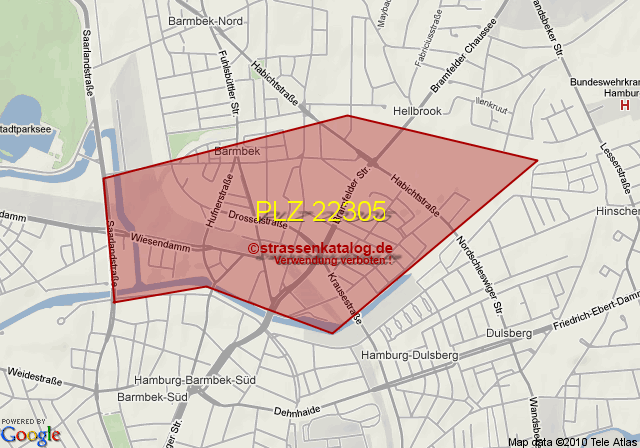 Straßenverzeichnis zur Postleitzahl 22305