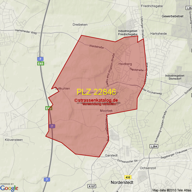 Ortsteile von Norderstedt mit der PLZ 22846