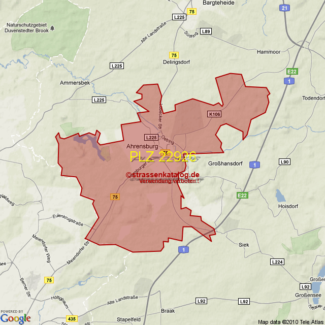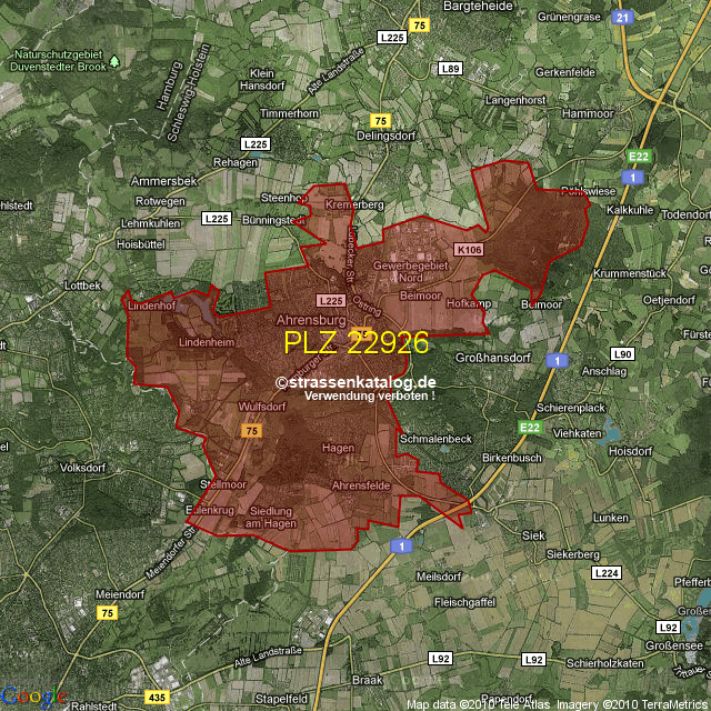 Ortsteile von Ahrensburg mit der PLZ 22926