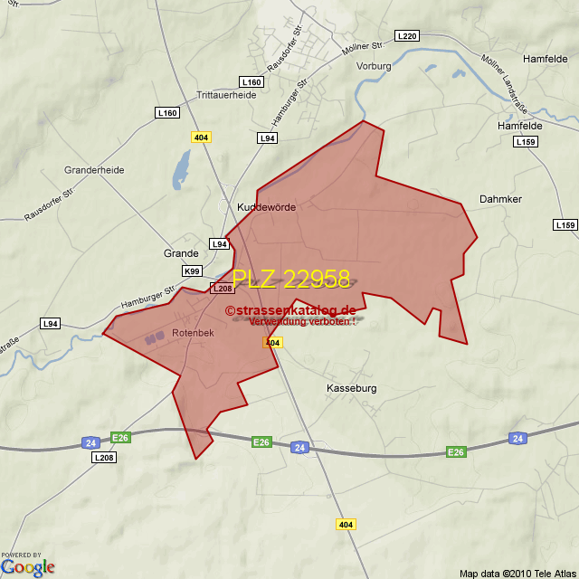 Ortsteile von Kuddewörde mit der PLZ 22958