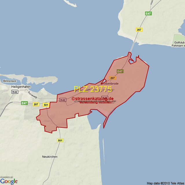 Straßenverzeichnis zur Postleitzahl 23775