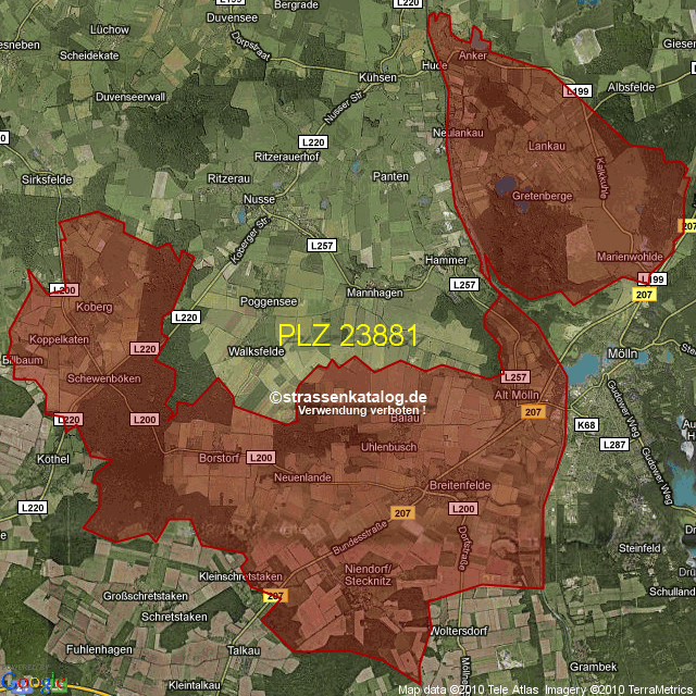 Ortsteile von Lankau mit der PLZ 23881