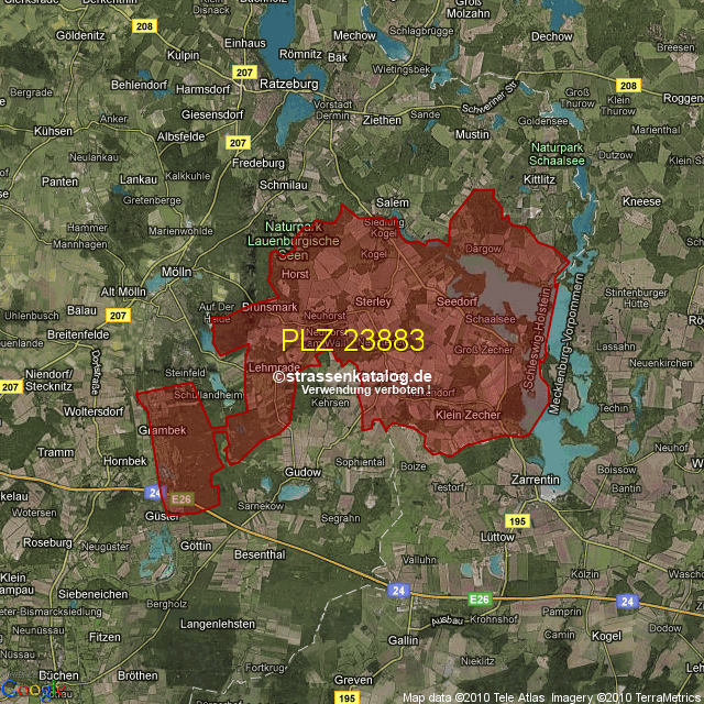 Ortsteile von Klein Zecher mit der PLZ 23883