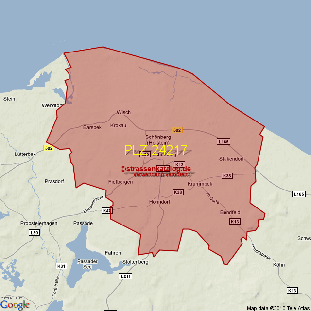 Straßenverzeichnis zur Postleitzahl 24217
