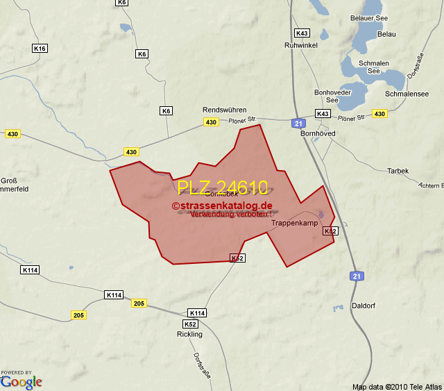 Straßenverzeichnis zur Postleitzahl 24610