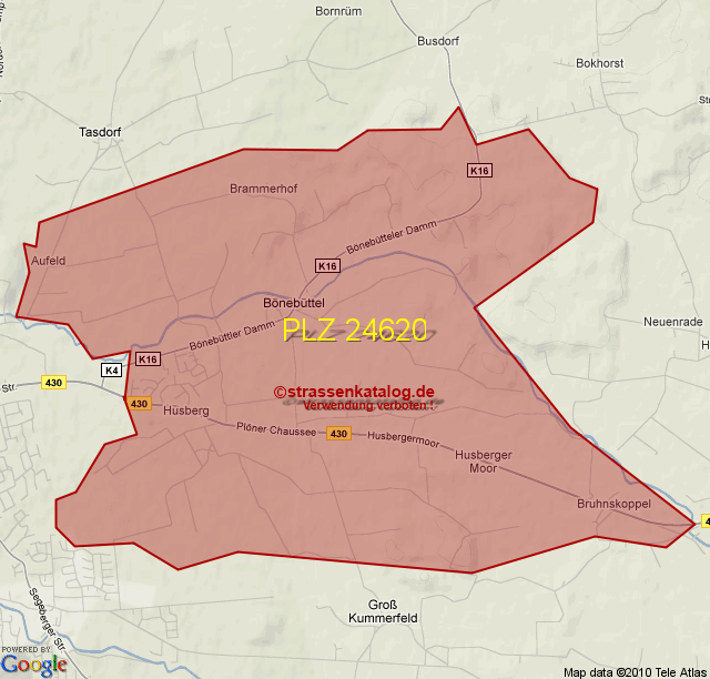 Straßenverzeichnis zur Postleitzahl 24620
