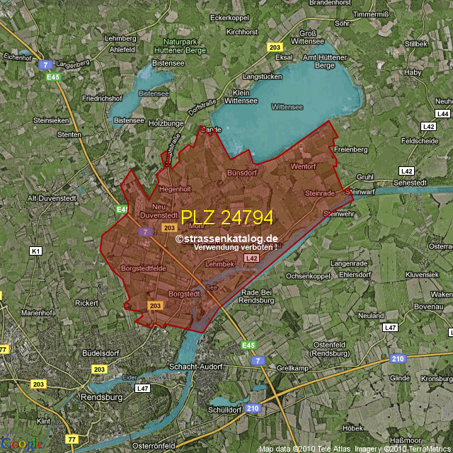 Straßenverzeichnis zur Postleitzahl 24794