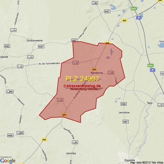 Straßenverzeichnis zur Postleitzahl 24997
