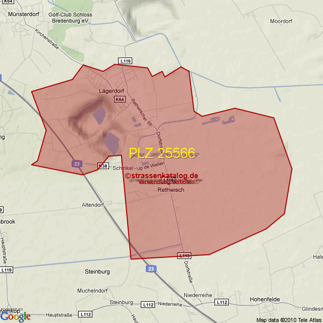 Postleitzahlgebiet (PLZ) 25566
