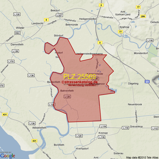 Ortsteile von Bahrenfleth mit der PLZ 25569