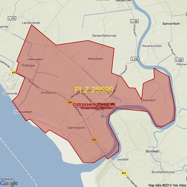 Ortsteile von Wewelsfleth mit der PLZ 25599