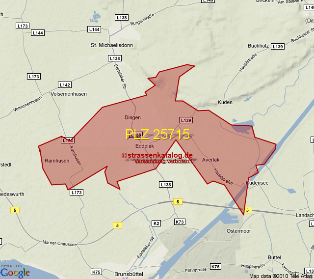 Postleitzahlgebiet (PLZ) 25715