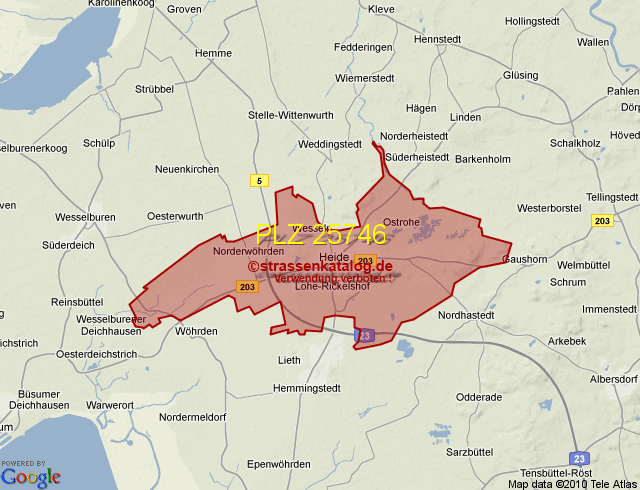 Ortsteile von Norderwöhrden mit der PLZ 25746