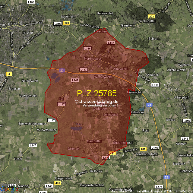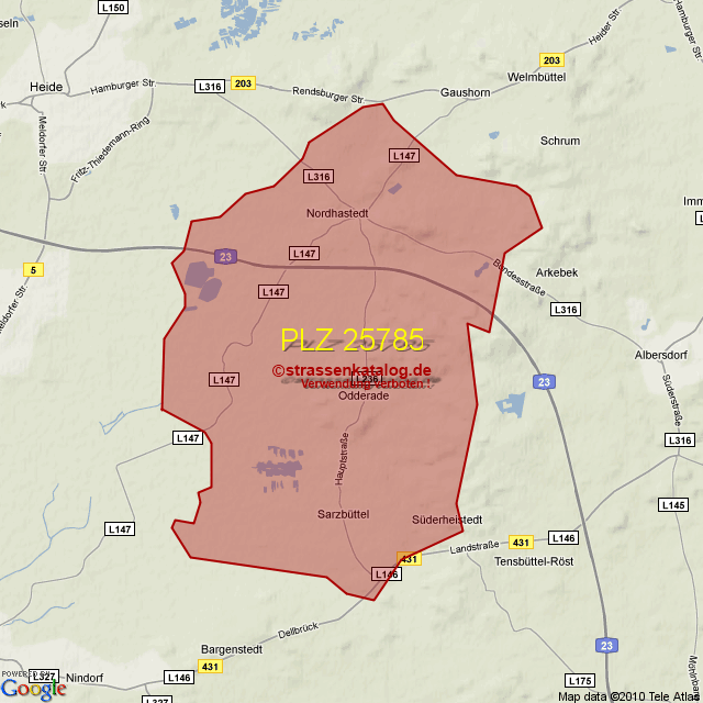 Postleitzahlgebiet (PLZ) 25785