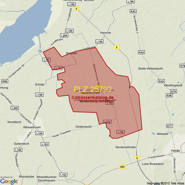Postleitzahlgebiet (PLZ) 25792