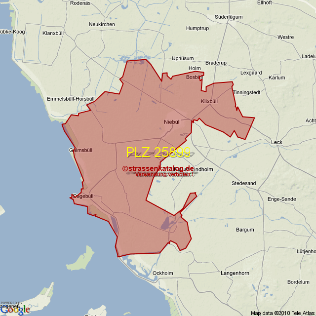 Postleitzahlgebiet (PLZ) 25899
