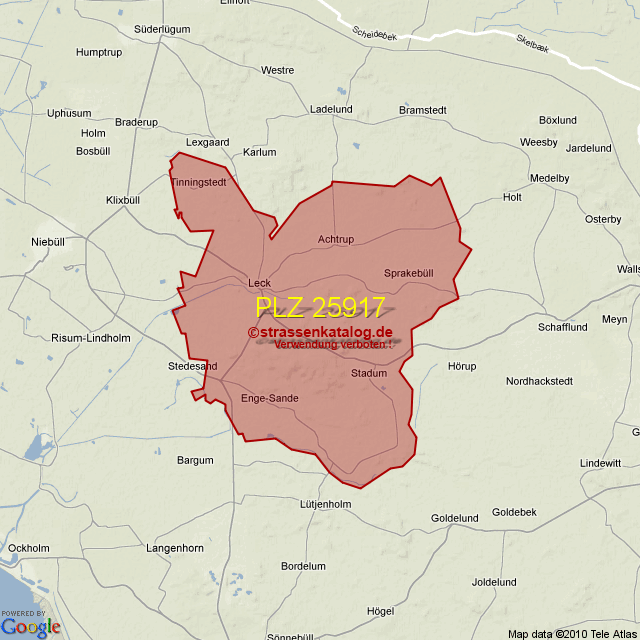 Postleitzahlgebiet (PLZ) 25917