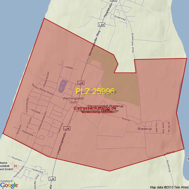 Ortsteile von Wenningstedt-Braderup mit der PLZ 25996