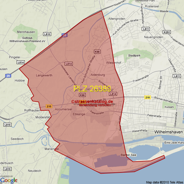 Ortsteile von Wilhelmshaven mit der PLZ 26389