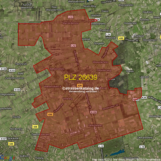 Ortsteile von Wiesmoor mit der PLZ 26639