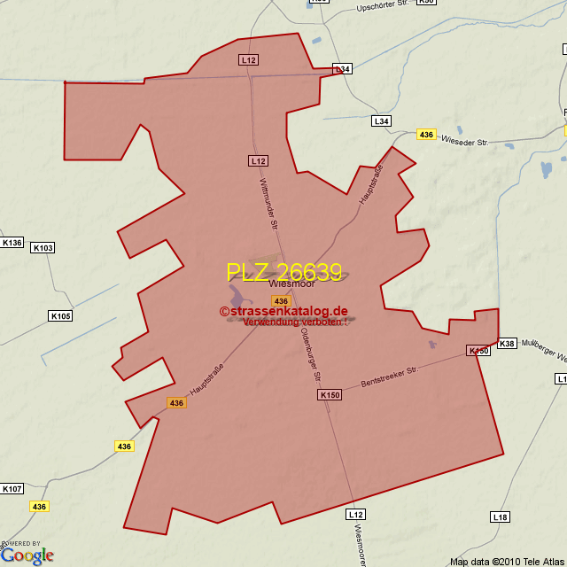 Straßenverzeichnis zur Postleitzahl 26639