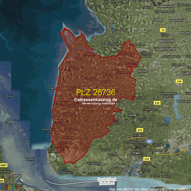Zu der Postleitzahl 26736 wurden 1 Orte und 21 Ortsteile gefunden.