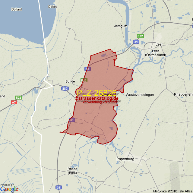 Zu der Postleitzahl 26826 wurden 1 Orte und 12 Ortsteile gefunden.