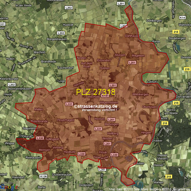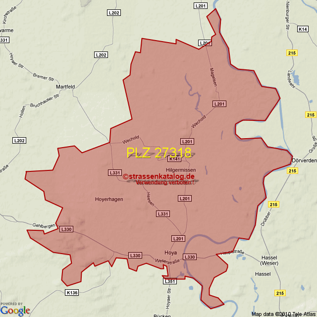 Ortsteile von Hilgermissen mit der PLZ 27318