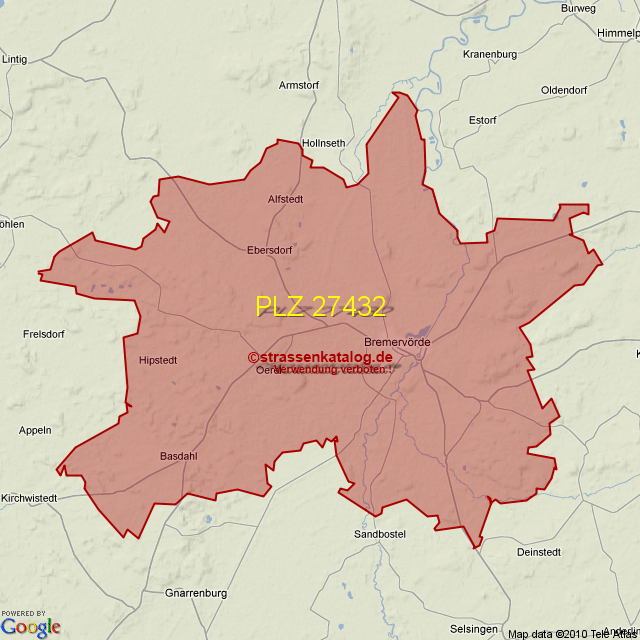 Straßenverzeichnis zur Postleitzahl 27432