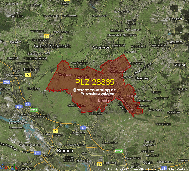 Ortsteile von Lilienthal mit der PLZ 28865